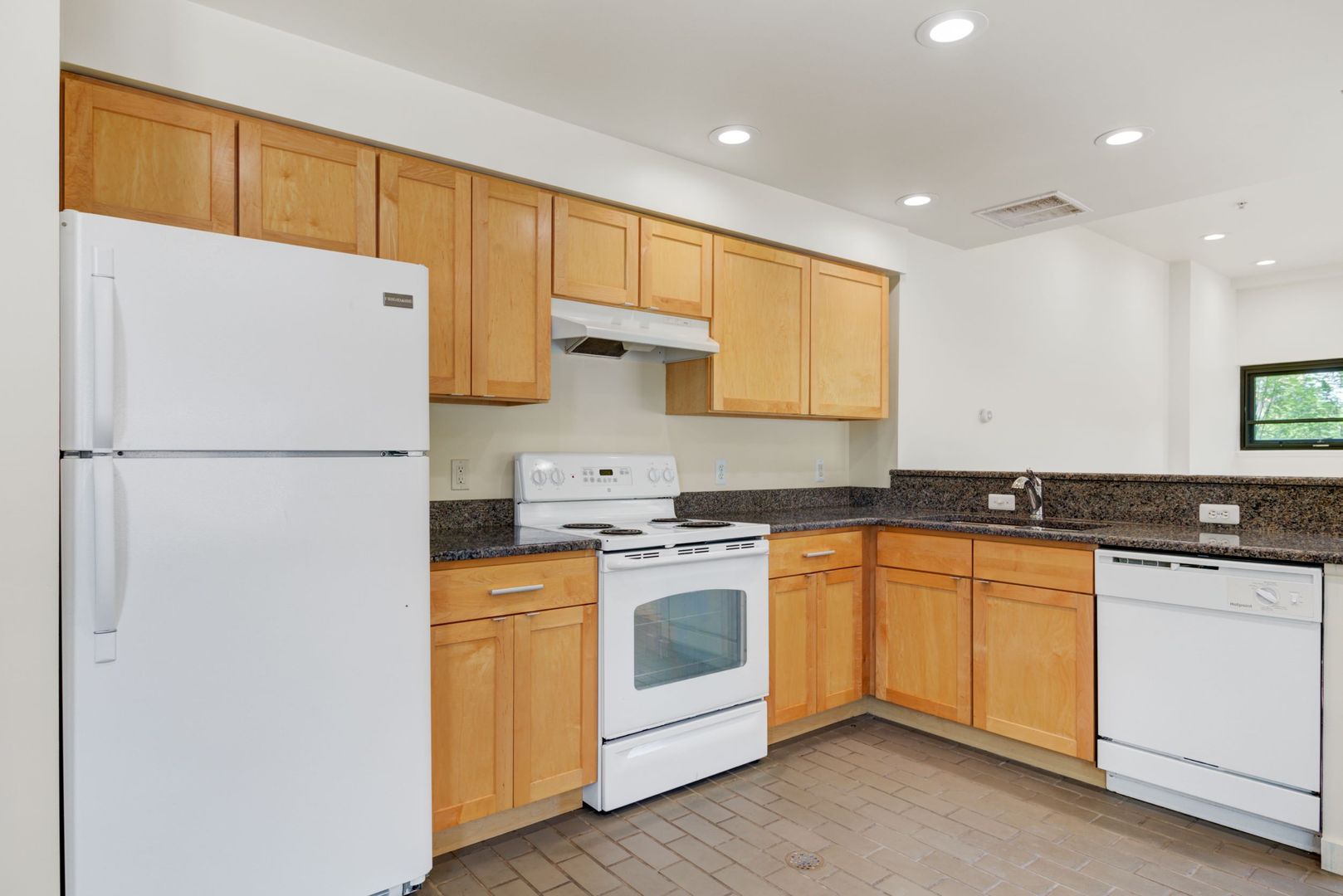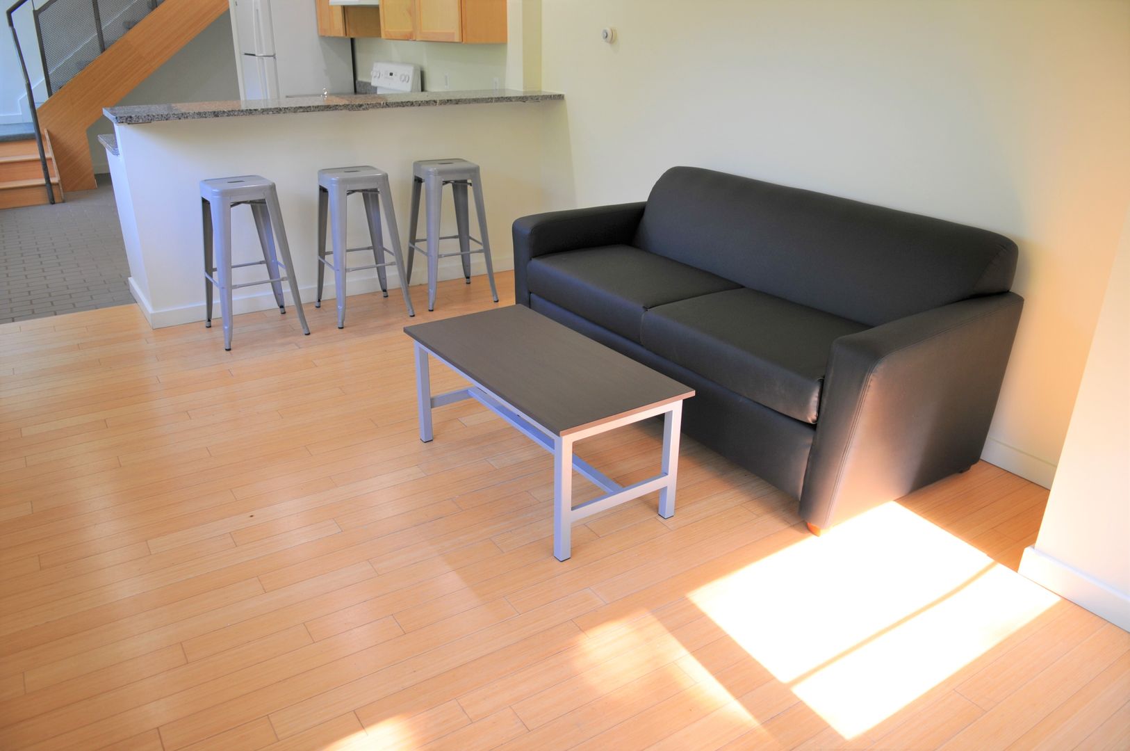 Bi-level penthouse unit with the ultimate in design features. Sunny living room with bamboo floors, floor-to-ceiling windows that let in plenty of natural light. Modern kitchen with maple cabinets, granite countertops, natural tile floors, dishwasher, and disposal. Private, locking bedrooms with recessed lighting and wired for cable. Ceramic tile baths with modern fixtures. Central A/C. Laundry on-site.