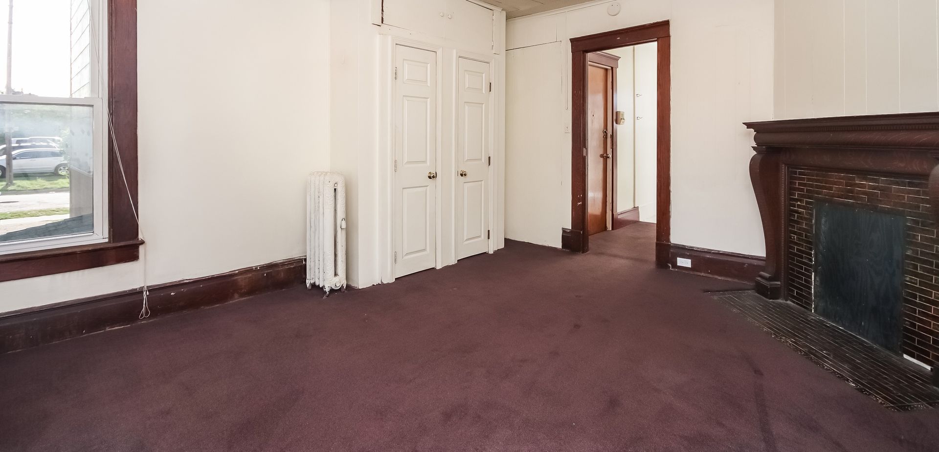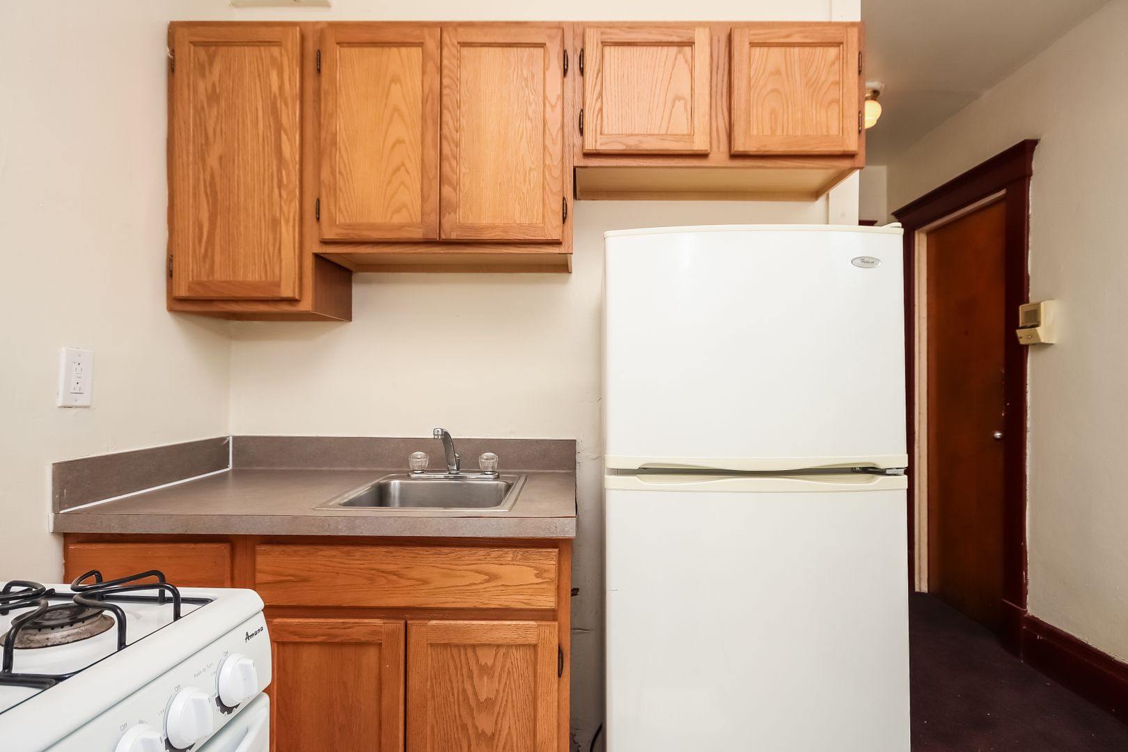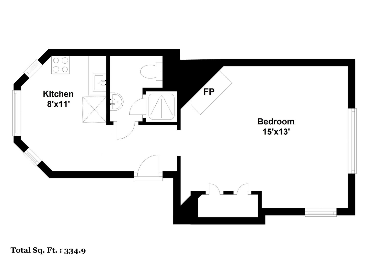 MAY LEASE! Studio apartment with vintage fireplace mantle.