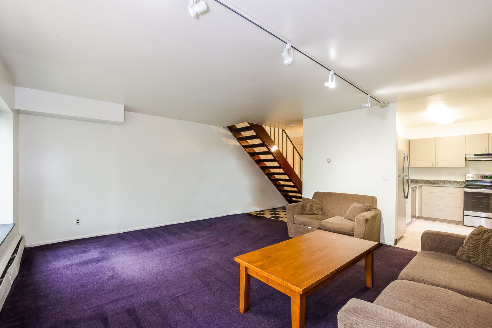 Bi-level penthouse with French doors leading from living room to balcony. Treetop views! Updated kitchen with dishwasher and disposal. Spacious bedrooms. Extra half bath. Designer lighting. Wall unit air conditioning. Laundry onsite.