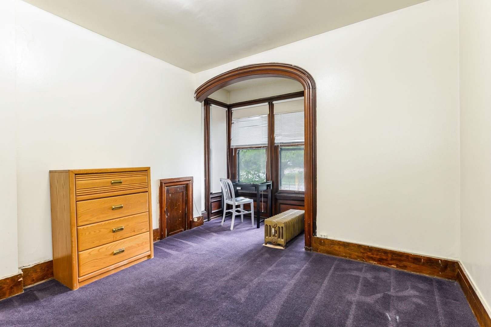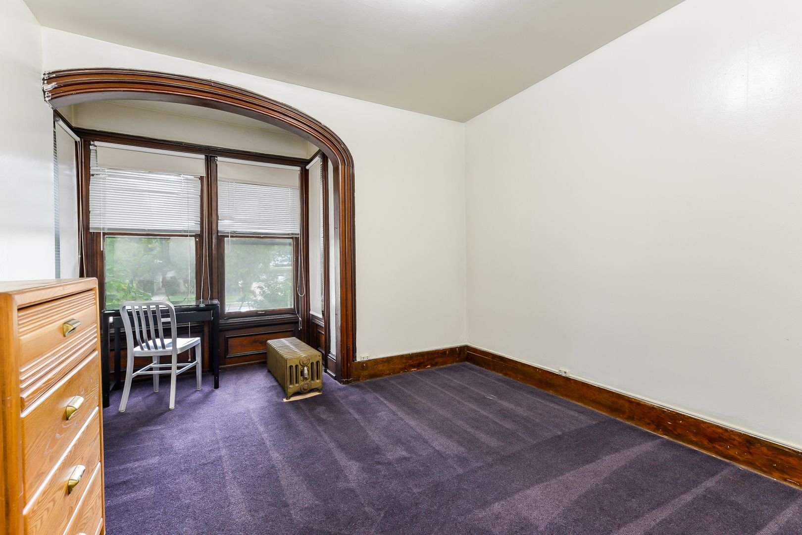New carpet installed! Good floor plan for two people. Large living room with deep wood moldings. Oversized bedroom. Newer windows. Laundry onsite.