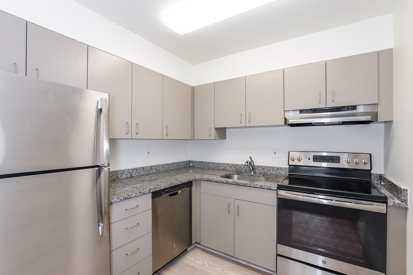 Cozy living room-dining room combination. Great layout! Updated kitchen with dishwasher and disposal. Two spacious bedrooms and one comfortable single. Wall unit air conditioning. Laundry on-site. Renovated bathroom not pictured, but shown in 3D tour.