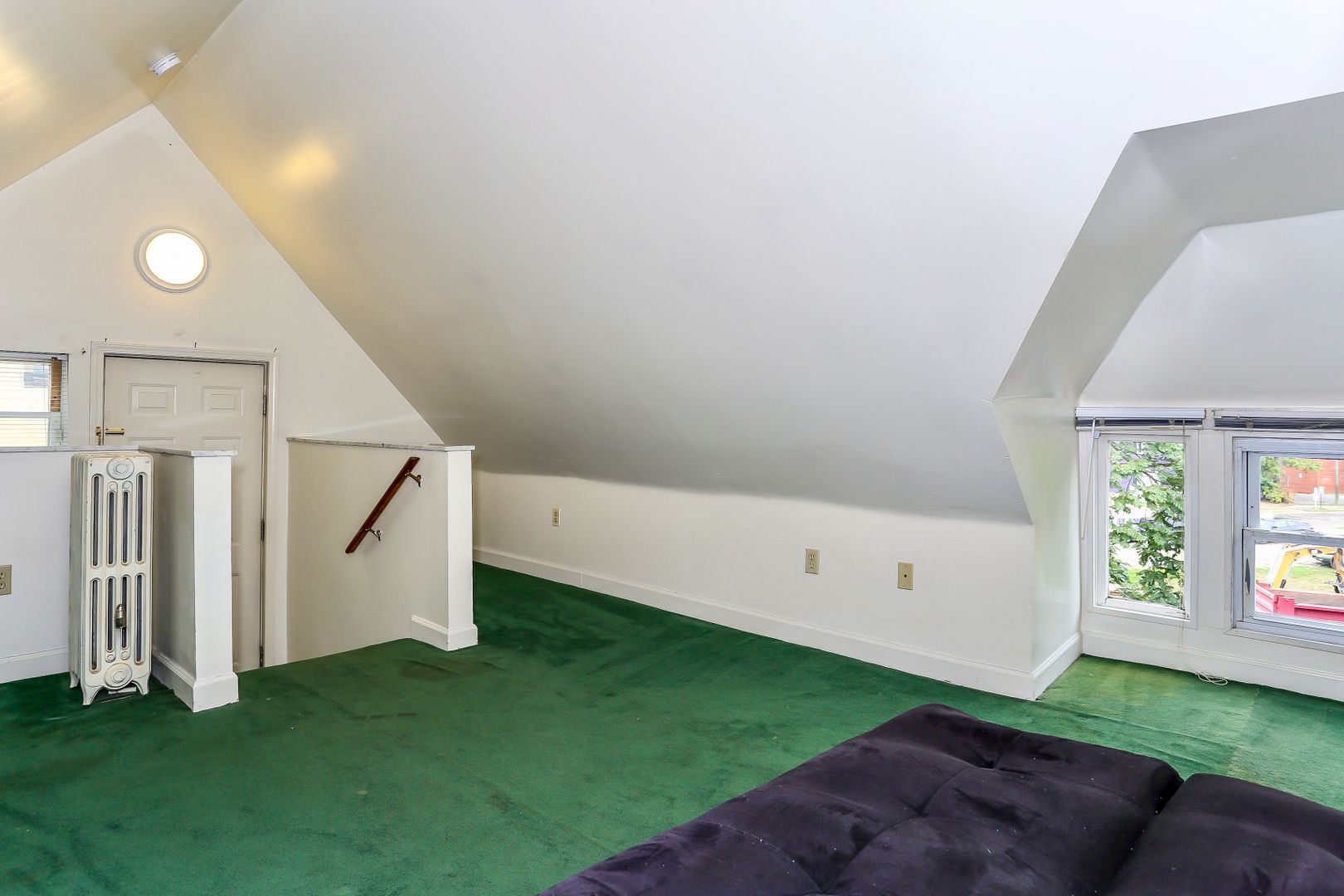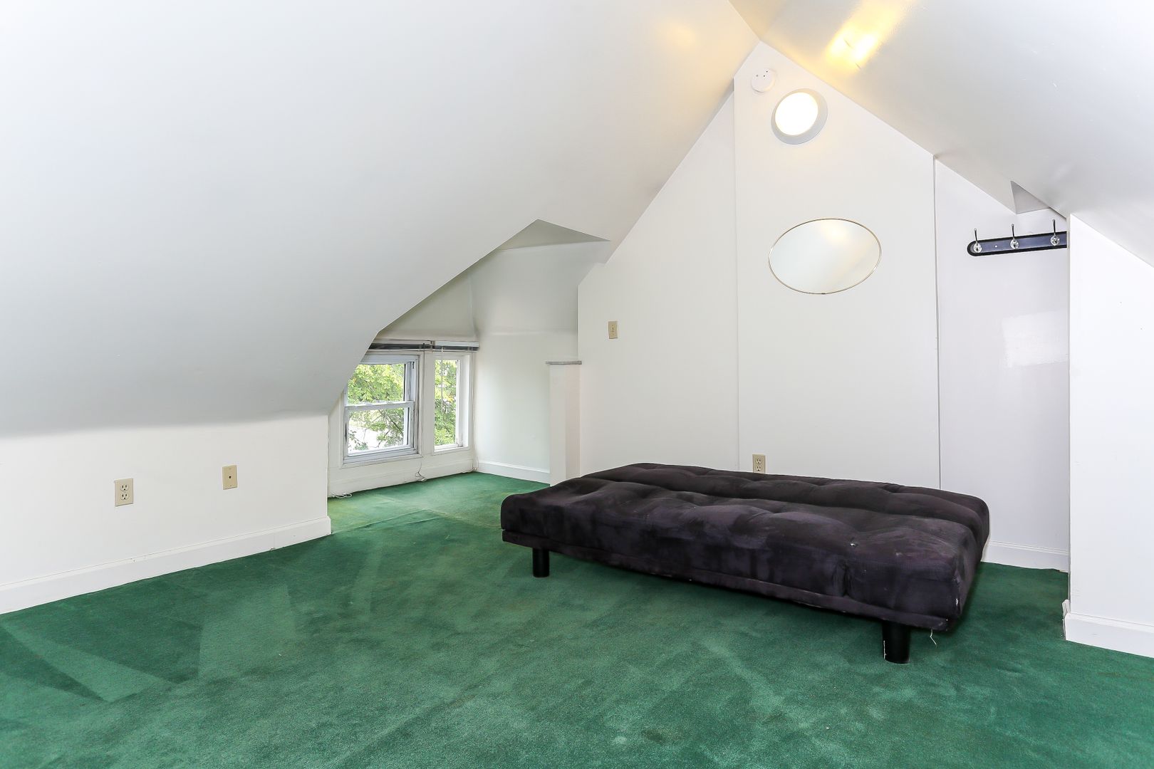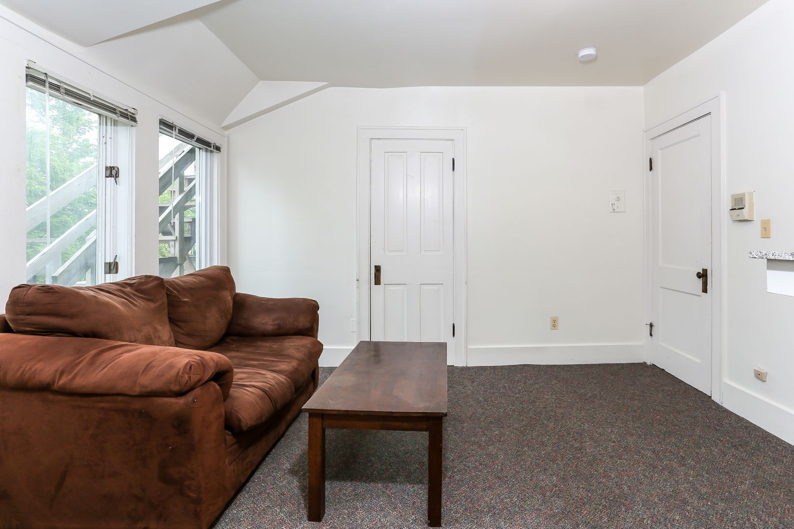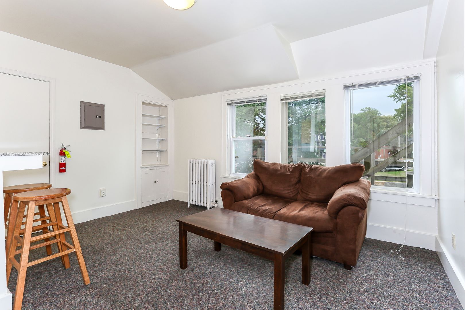 Bi-level "loft" apartment! Comfortable sunny living room. Living room with sunny windows and newer carpet throughout. Cathedral ceiling in bedroom loft. Laundry onsite.