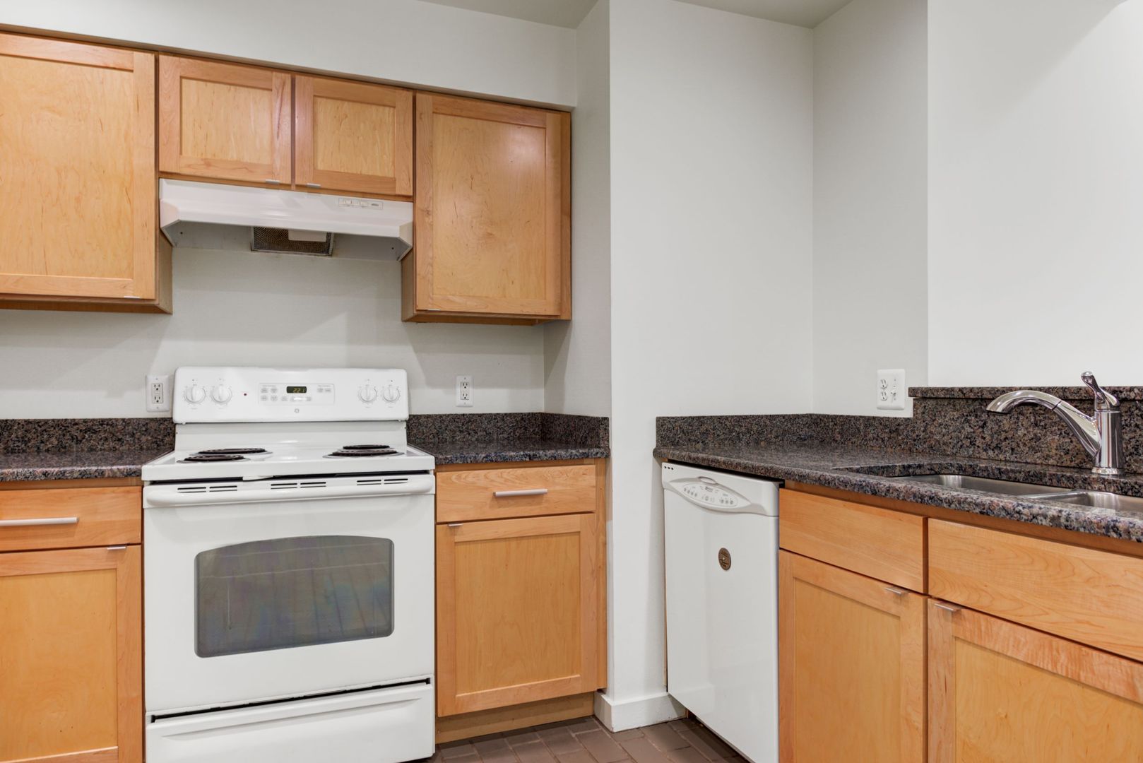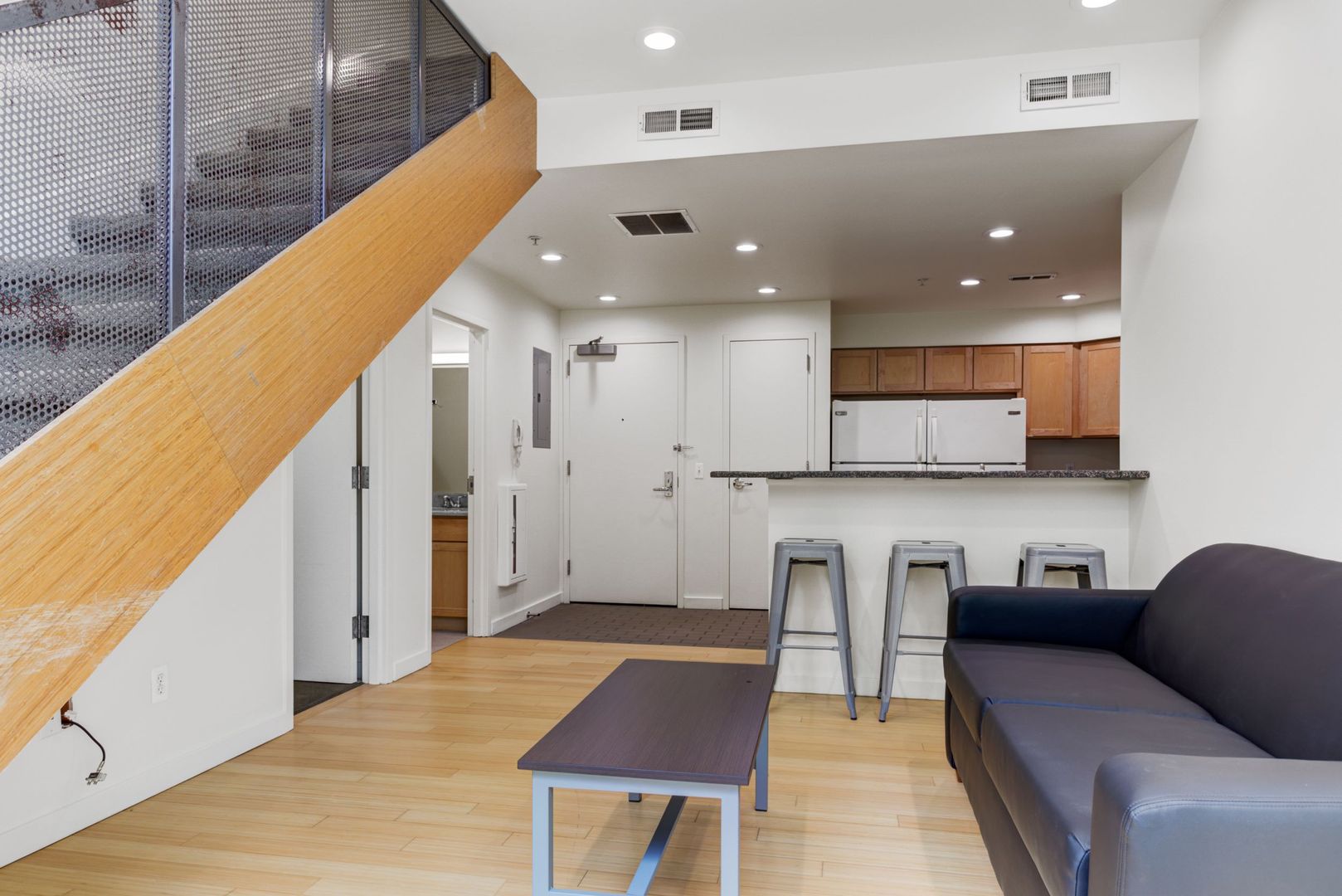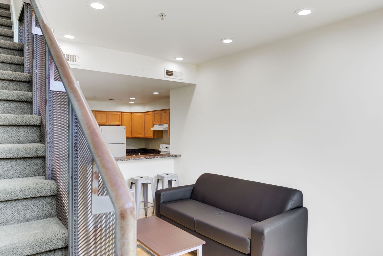 Bi-level penthouse unit with the ultimate in design features. Sunny living room with hardwood floors, floor-to-ceiling windows that let in plenty of natural light. Modern kitchen with maple cabinets, granite countertops, natural tile floors, dishwasher, and disposal. Private, locking bedrooms with recessed lighting and wired for cable. Ceramic tile baths with modern fixtures. Central A/C. Laundry on-site. Private garage parking available on-site.