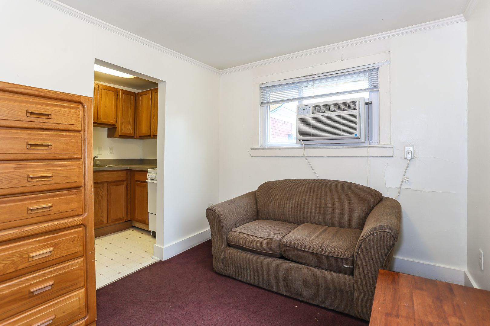 Large living room and newer kitchen with dishwasher, disposal, and newer appliances. Newer bath with porcelain tub and all new fixtures. Newer carpet, windows, and designer lighting throughout. Window AC Unit.