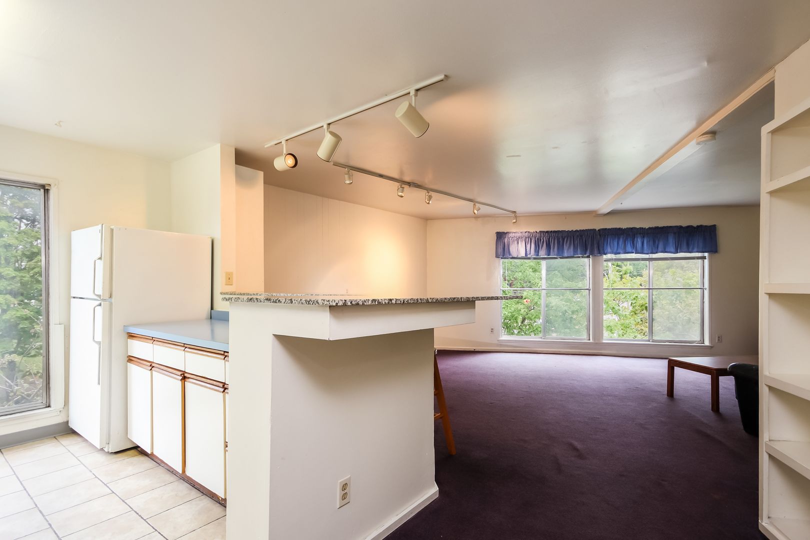 New carpet August 2025 (Not pictured - see video tour). Huge living-dining room combination with large windows giving lots of natural light. Spacious bedrooms. Kitchen features granite breakfast bar, dishwasher, and disposal. Laundry onsite.